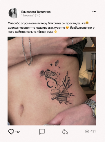 Желаешь записаться на сеанс или консультацию? Оставляй заявку на сайте либо пиши во Вконтакте. С нас бесплатная консультация и уникальный эскиз.